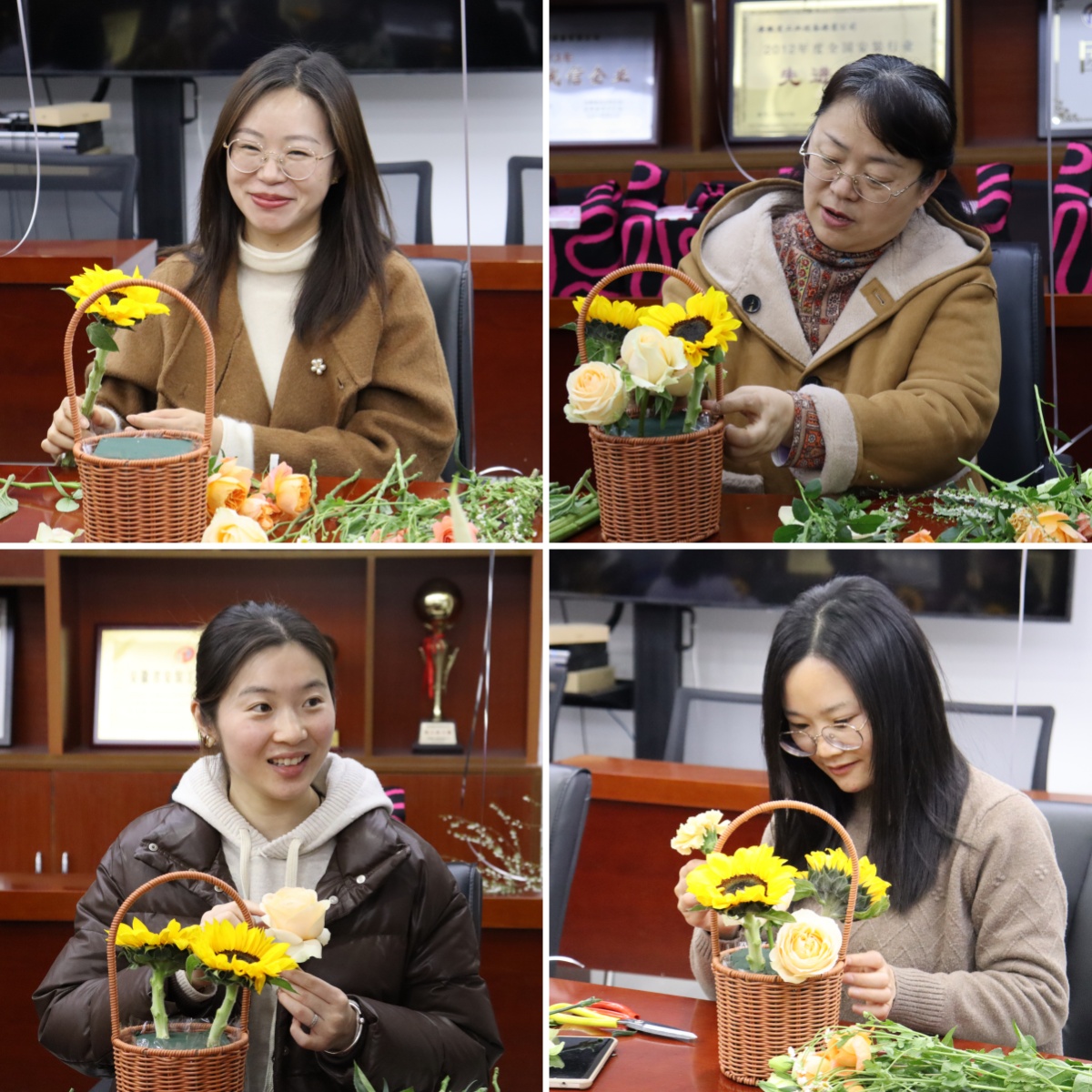活動現(xiàn)場花香四溢,充滿著春天的氣息,專業(yè)花藝師從花材特性、色彩美學到造型構(gòu)思向大家進行了系統(tǒng)講解并進行了現(xiàn)場演示。女職工們興致盎然、躍躍欲試,充分發(fā)揮自己的想象力,以高漲的熱情投入到插花創(chuàng)作中,紛紛化身“春日設(shè)計師”,將玫瑰的熱烈、百合的芬芳、向日葵的陽光巧妙組合,在修剪與構(gòu)思中展現(xiàn)女性的細膩匠心。大家一邊插花創(chuàng)作,一邊互相交流著自己的想法和創(chuàng)意,現(xiàn)場充滿了歡聲笑語、其樂融融。