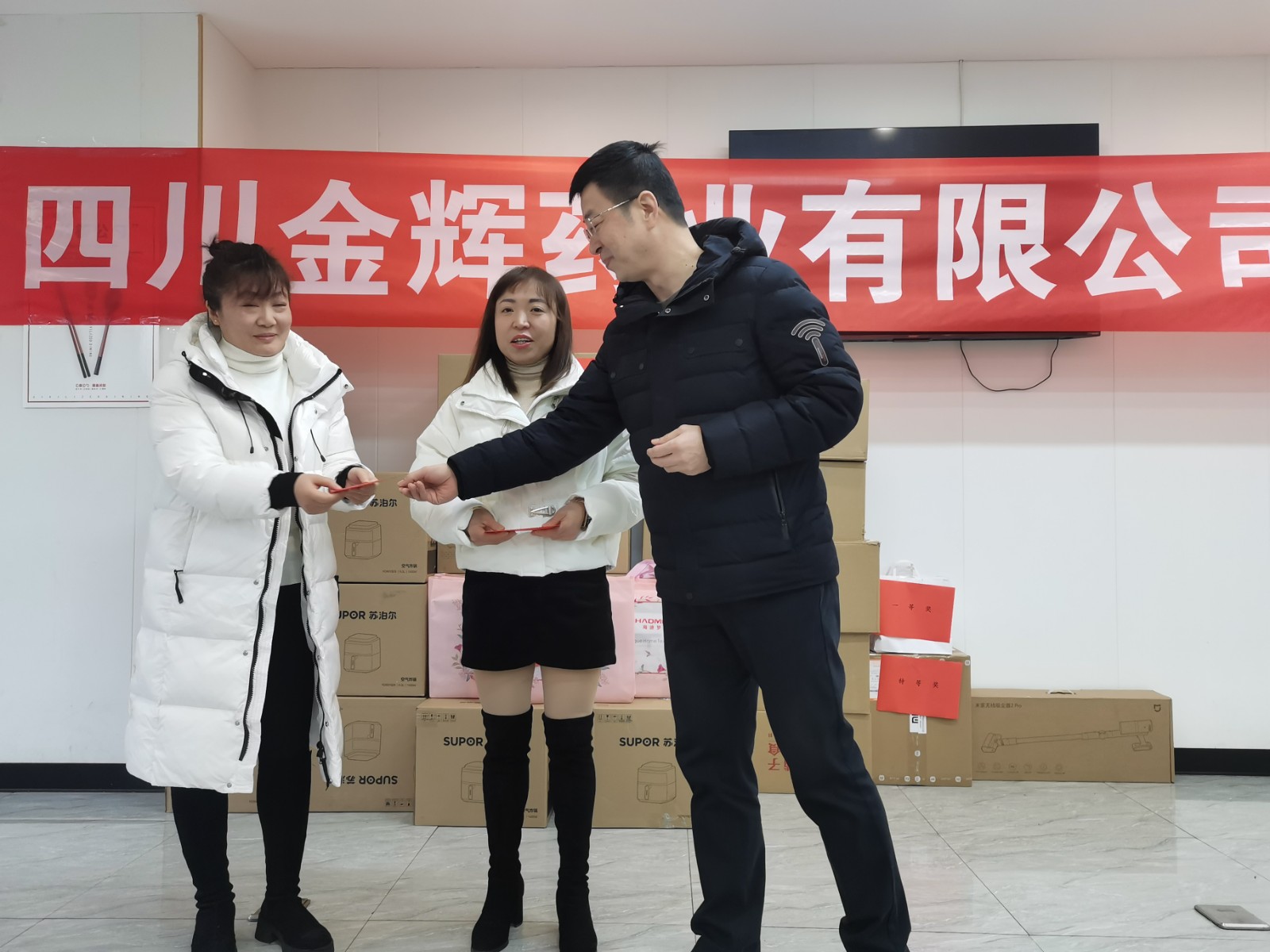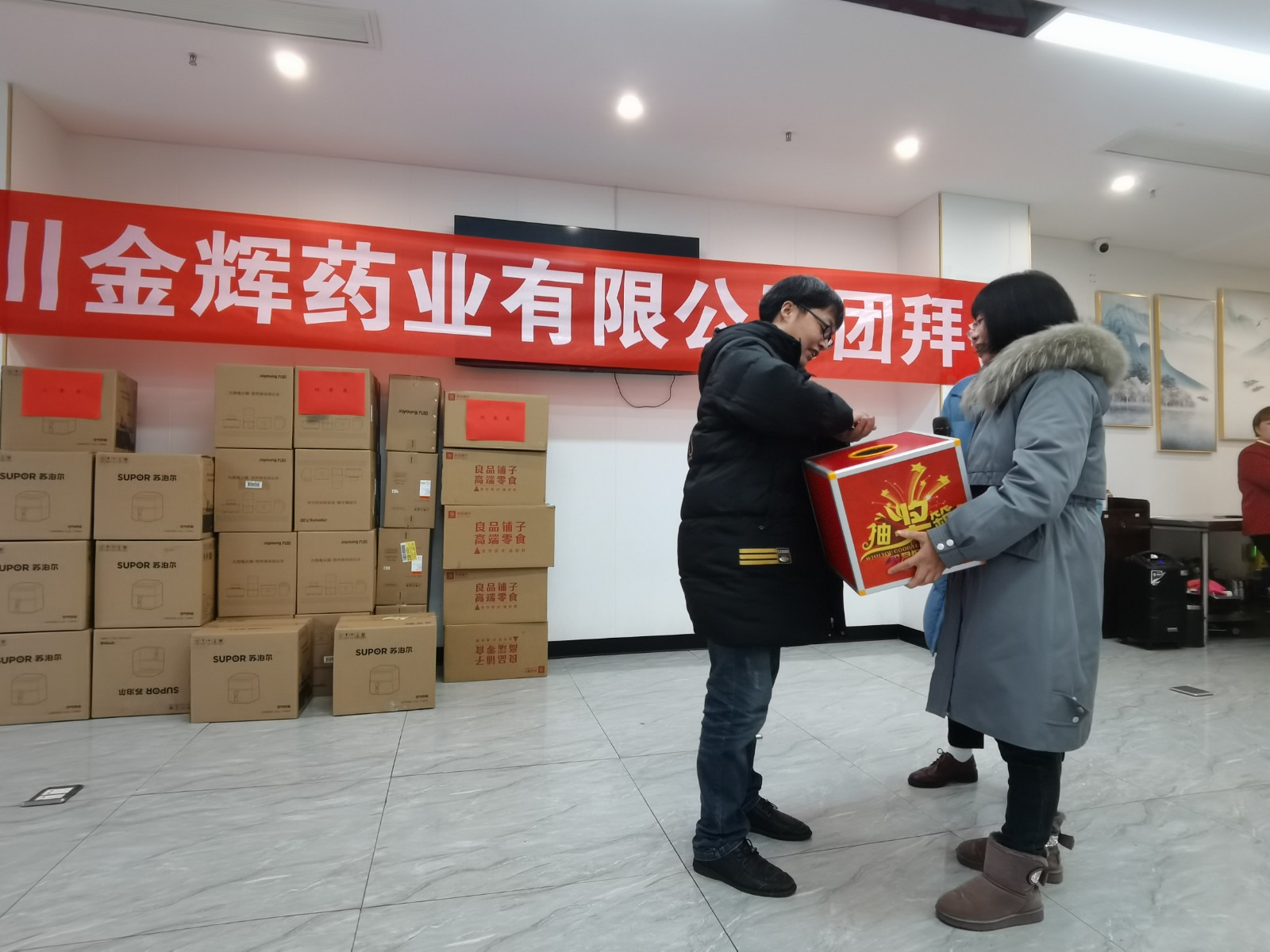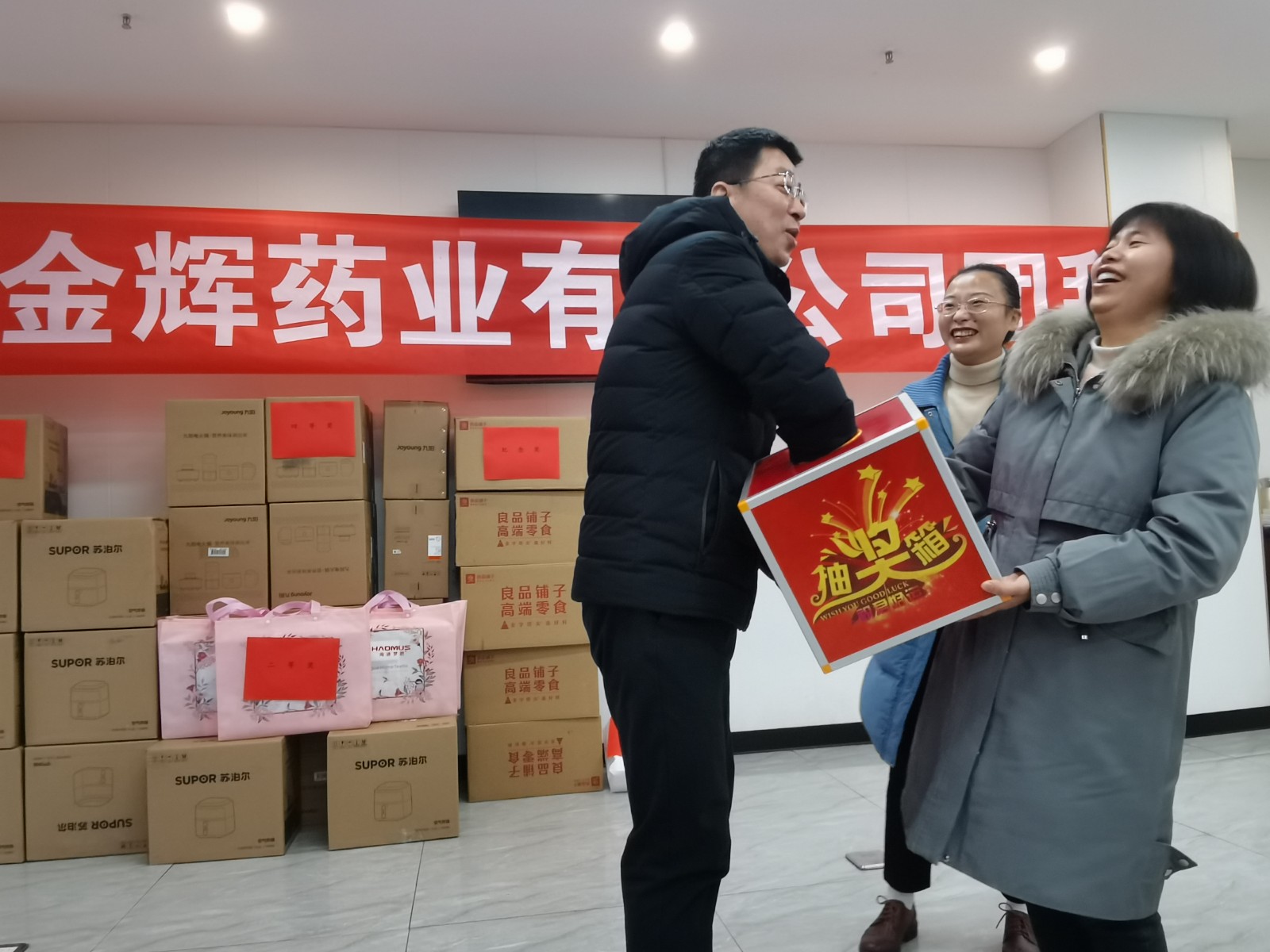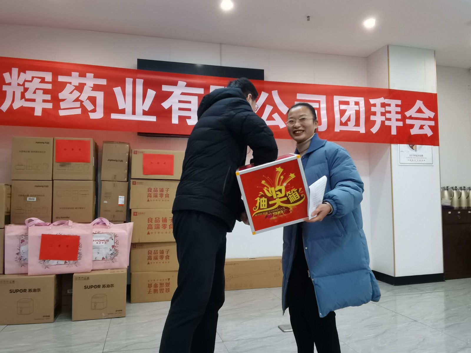 我們的抽獎(jiǎng)環(huán)節(jié)已經(jīng)全部結(jié)束,恭喜每一位中大獎(jiǎng)的同事,沒(méi)中獎(jiǎng)的人也領(lǐng)到了專屬禮品。明年再接再厲,爭(zhēng)取下一次的好運(yùn)哦。感謝馬總感謝各位領(lǐng)導(dǎo)為我們每一位員工想到如此周到,讓我們感受到了大家庭的溫暖。
