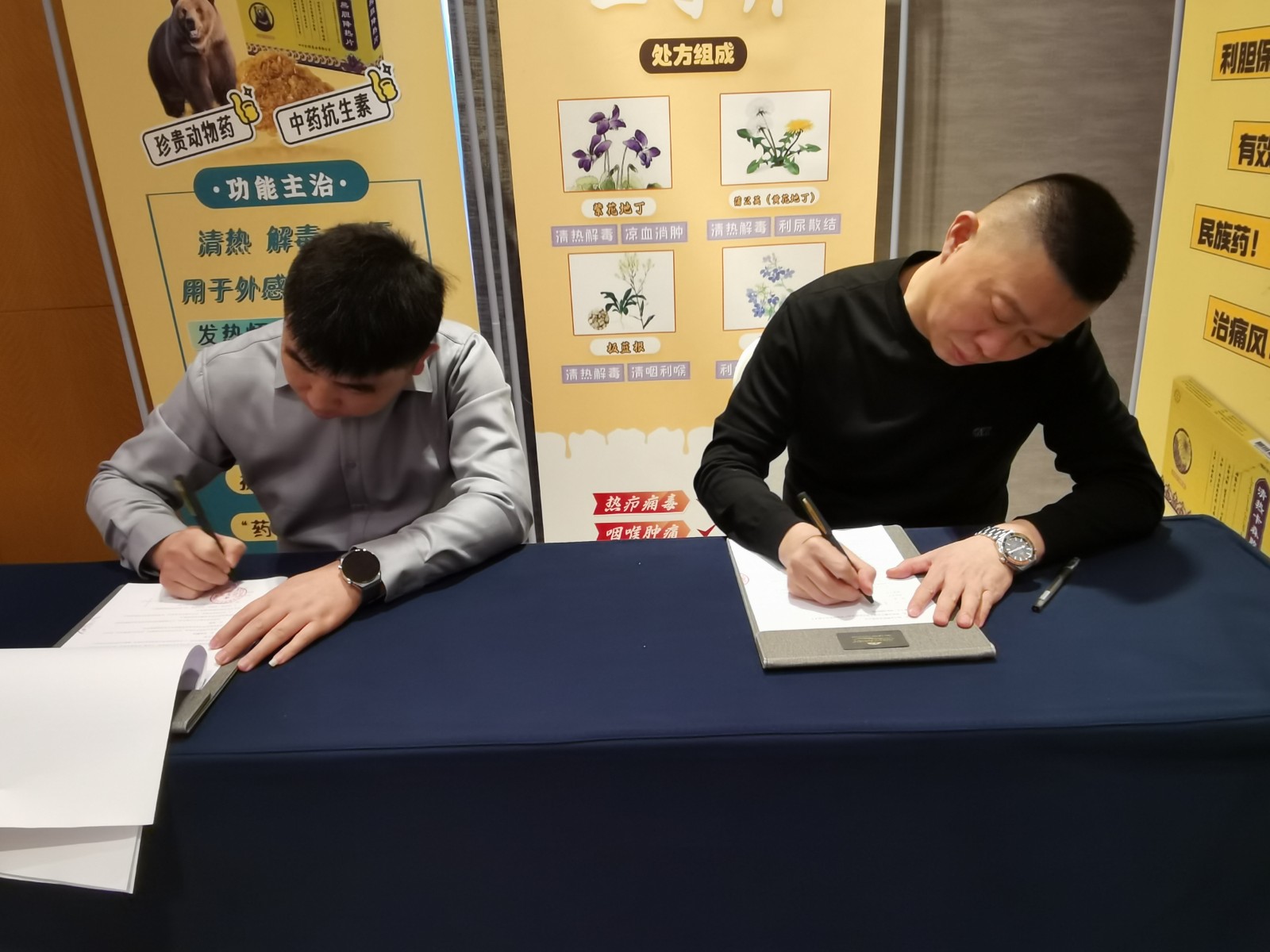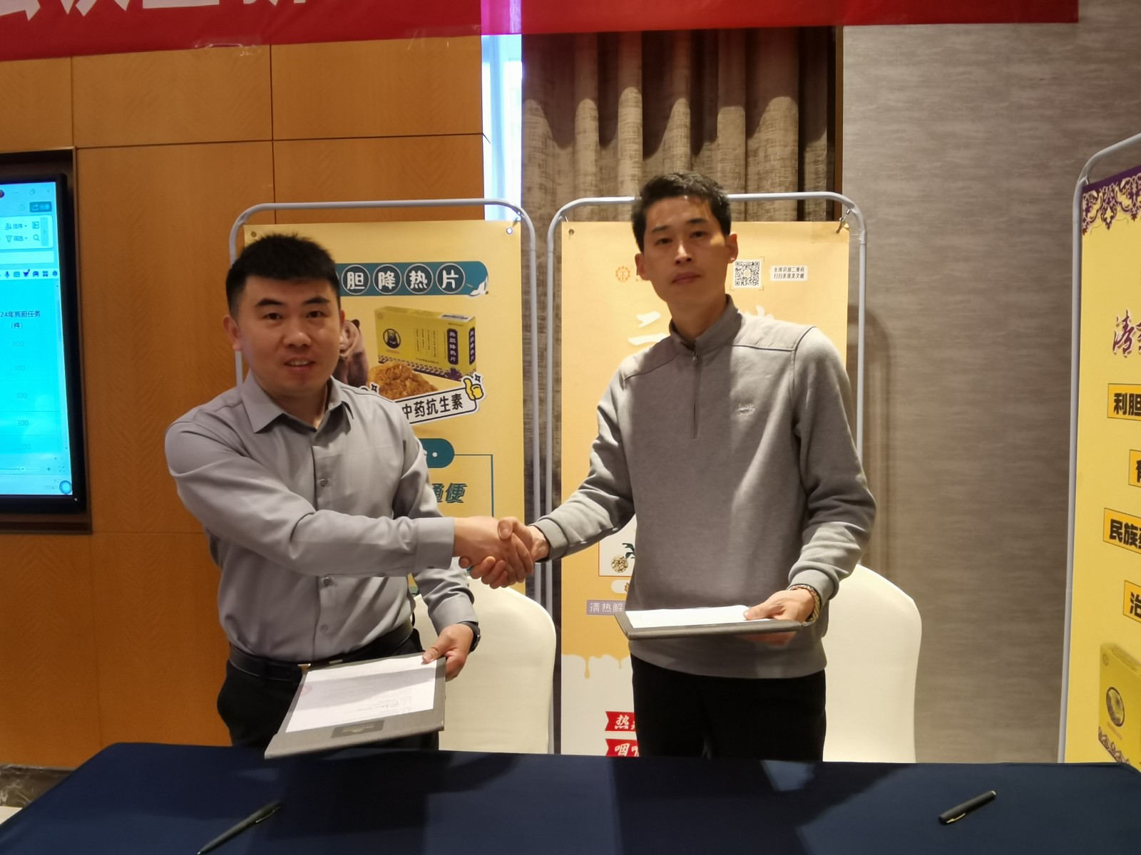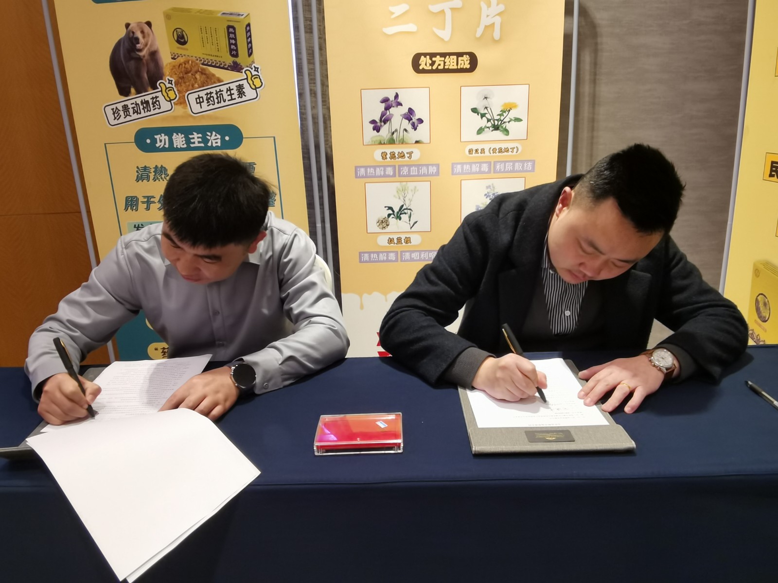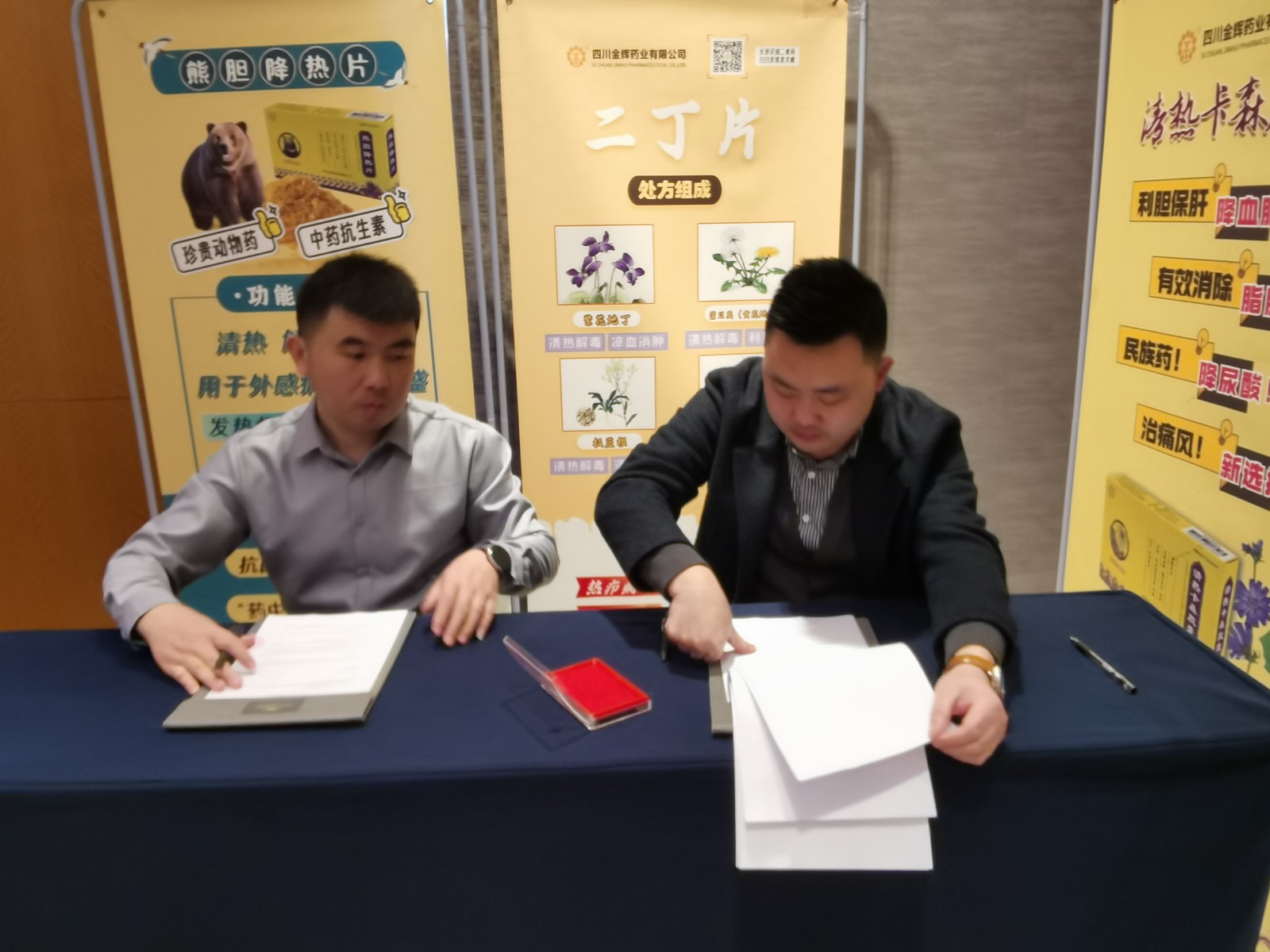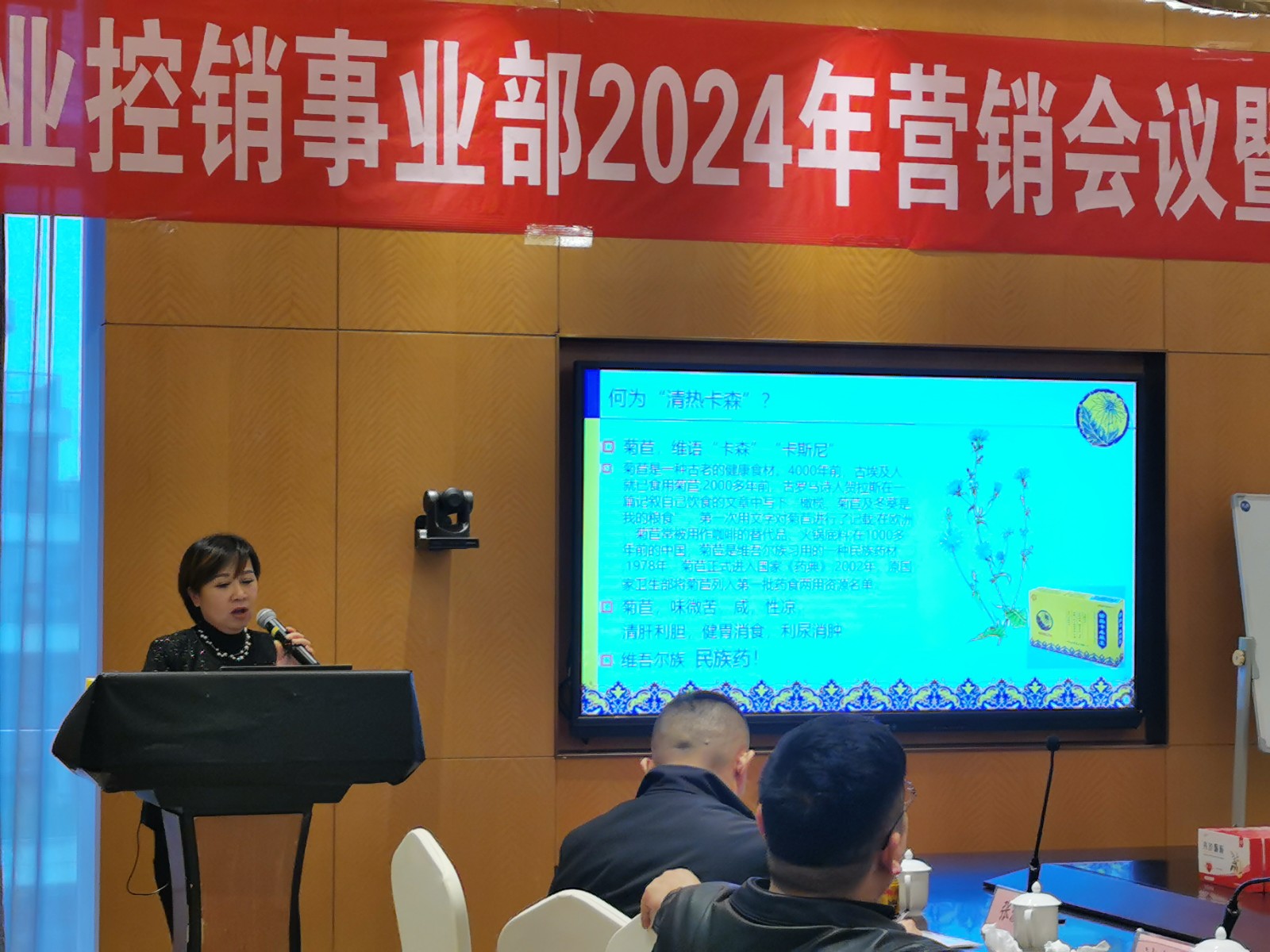 ↑副總經(jīng)理李春林新品介紹:清熱卡森、二丁片,熊膽粉